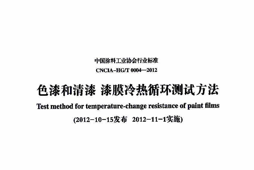 色漆和清漆漆膜冷熱循環(huán)測試方法標(biāo)準(zhǔn)CNCIA-HG/T 0004-2012