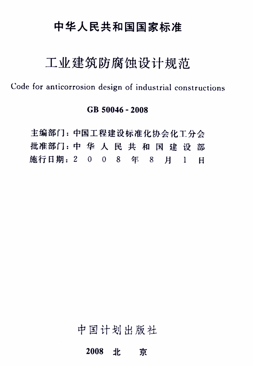工業(yè)建筑防腐蝕設(shè)計規(guī)范防腐涂料選擇規(guī)定標(biāo)準(zhǔn)GB 50046-2008