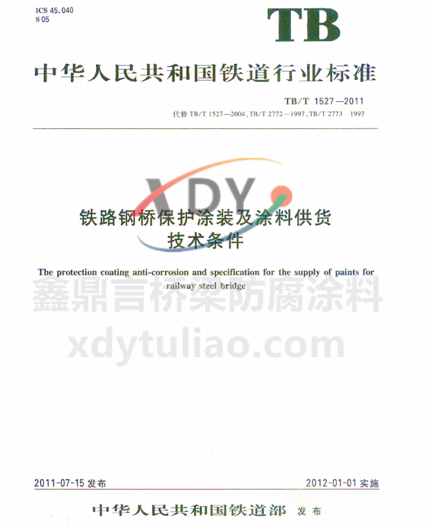 TB/T 1527-2011鐵路鋼橋保護涂裝及涂料供貨技術條件標準是裁剪TB/T 1527-2011《鐵路鋼橋保護涂裝及涂料供貨技術條件》紙質版原文。大家可以放心參考。