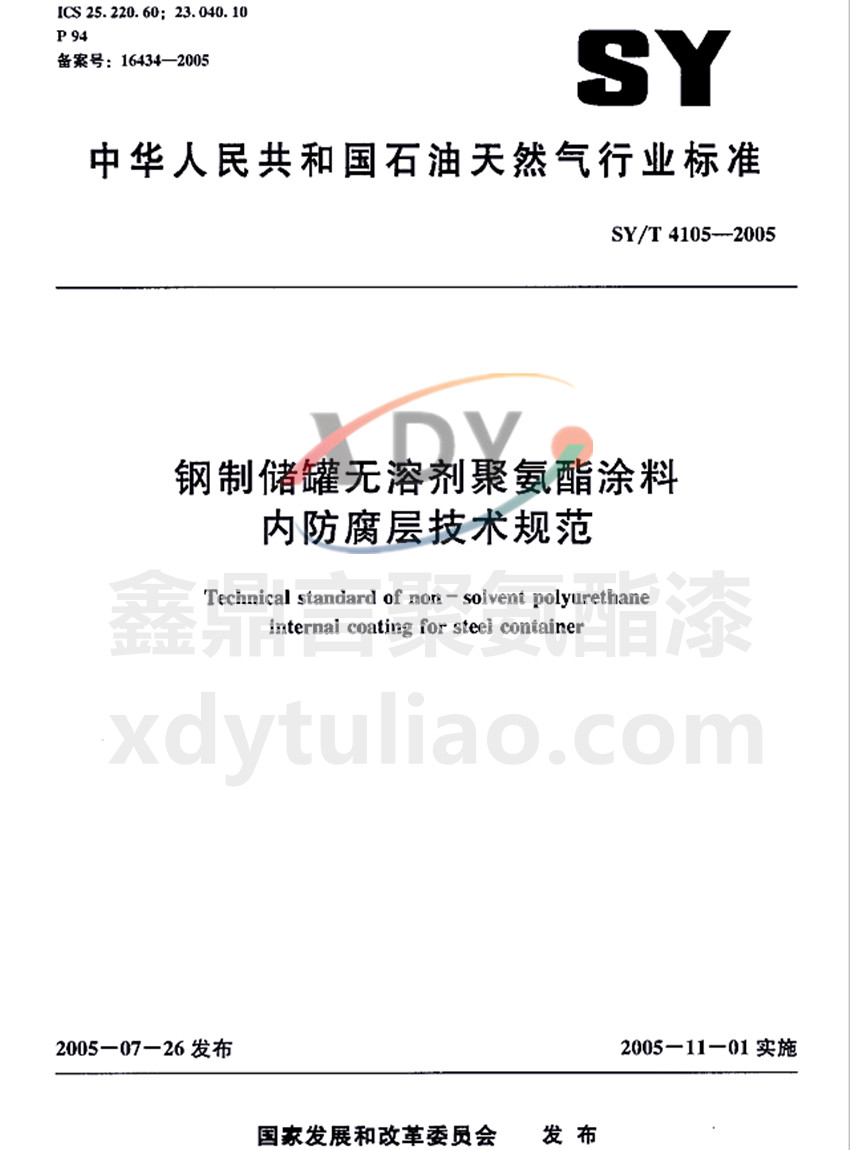 鋼制儲罐無溶劑聚氨酯涂料內(nèi)防腐層技術(shù)規(guī)范標準SY/T 4105-2005