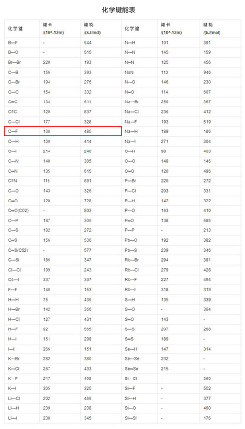 C-F化學鍵是XDY-F氟碳漆的重要性能影響因素,鍵能很強,那么所說的鍵能又是什么呢?化學鍵能是指1.01×105Pa和25℃下(常溫常壓下),將1mol理想氣體分子AB斷裂為中性氣態原子A和B所需要的能量,單位為KJ•mol-1。鍵能越大,化學鍵越牢固,含有該鍵的分子越穩定。